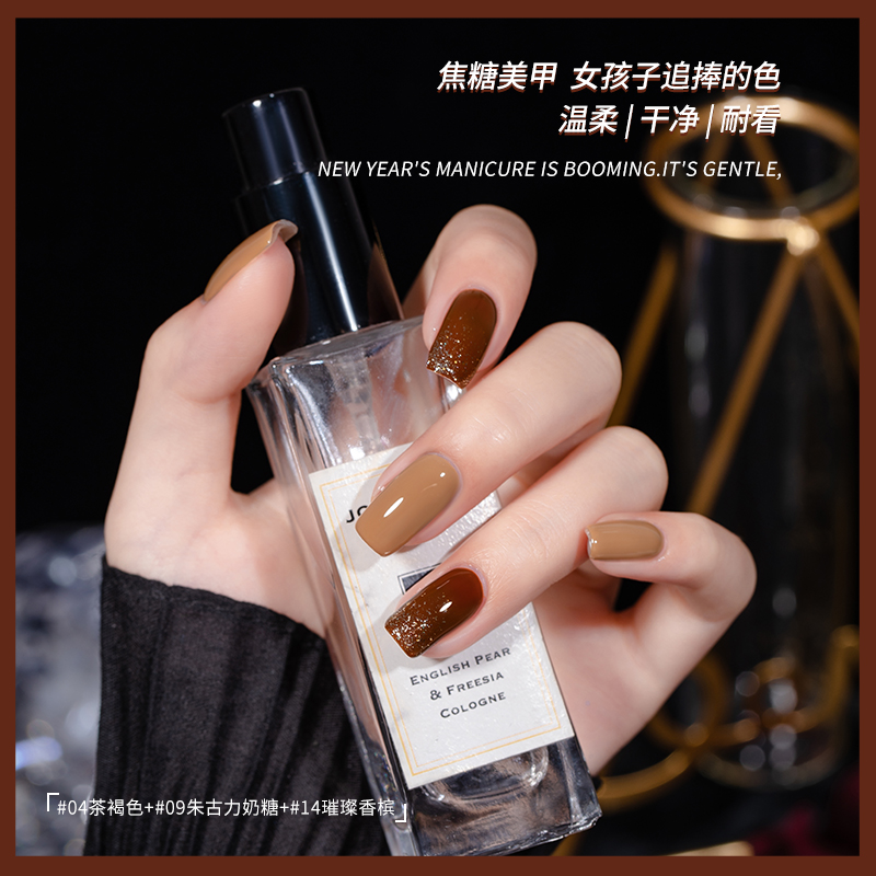春夏焦糖指甲油胶2025年新款网红流行显白咖啡棕色套装美甲店专用