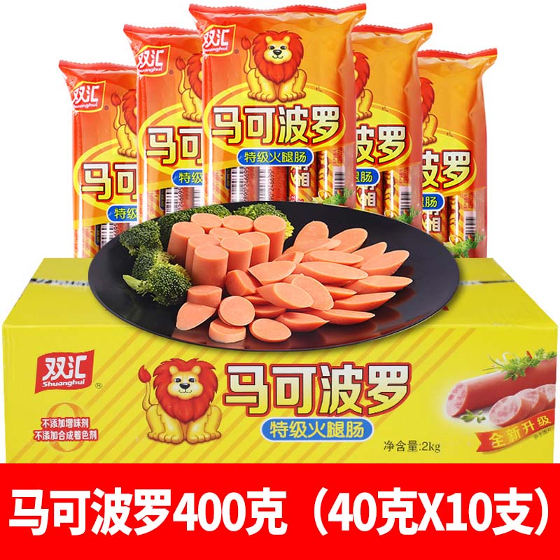 双汇马可波罗特级火腿肠400g即食整箱香肠批发零食泡面搭档