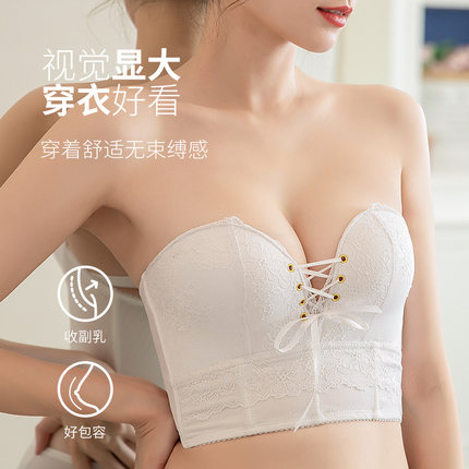 无肩带内衣女聚拢防滑充气加厚小胸抹胸式裹胸婚纱礼服隐形文胸罩