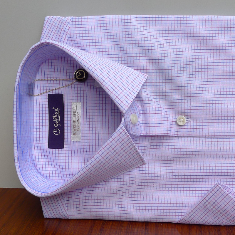 金利来男装短袖衬衫夏季格子修身纯棉商务正装MSS18121028-21