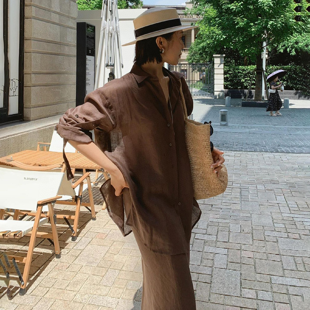 深圳南油高货100%亚麻面料时尚套装女高级感显瘦显高衬衫半裙两件