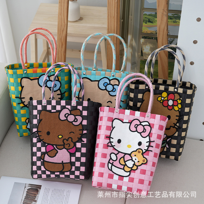 hellkitty卡通编织包伴手礼菜篮子包手提包学院风手拎包沙滩包女