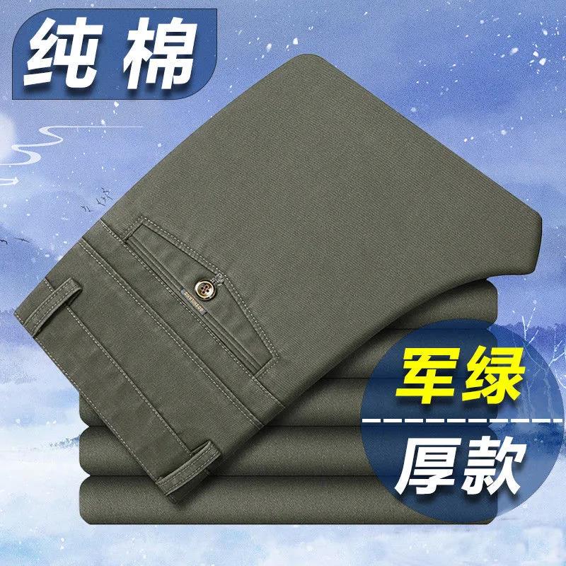 【厂家直销】秋冬厚款纯棉西装休闲裤宽松直筒中老年男士高腰深档