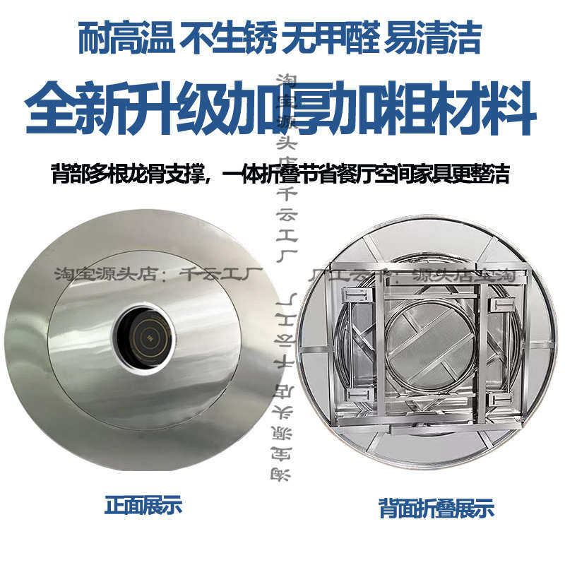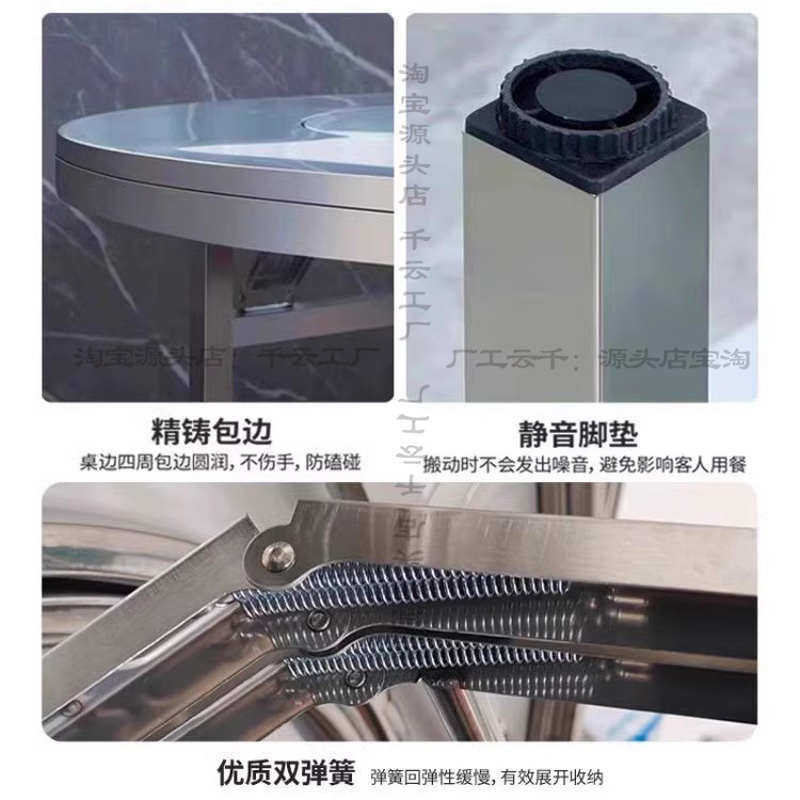 不锈钢转盘圆桌下沉火锅桌电磁炉一体家用餐桌折叠桌子商用大饭桌