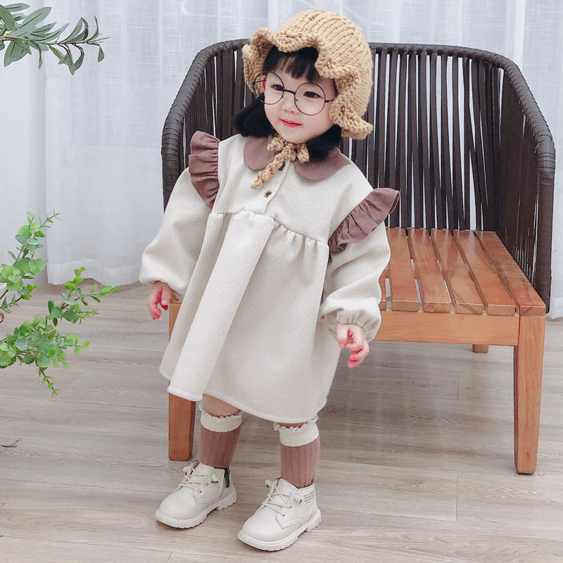 女宝宝秋冬连衣裙亲肤新款婴幼儿长袖娃娃领裙子小女童韩版秋装潮