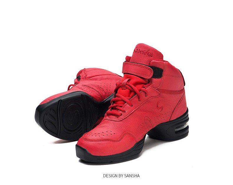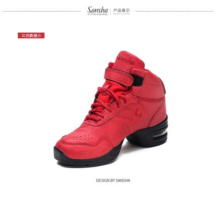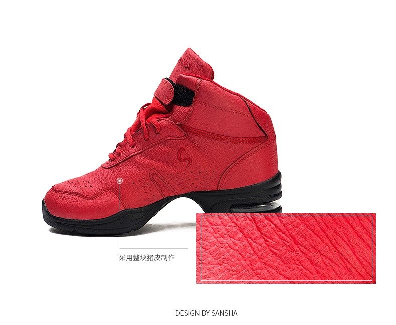 Sansha 法国三沙运动舞蹈鞋皮面气垫现代舞鞋高帮鞋广场舞鞋