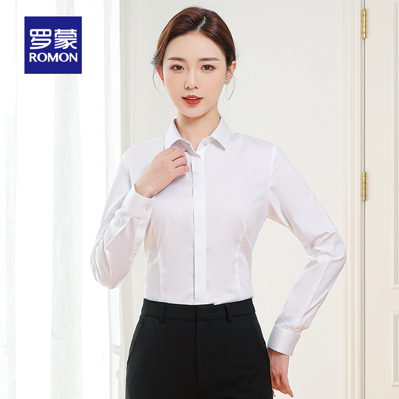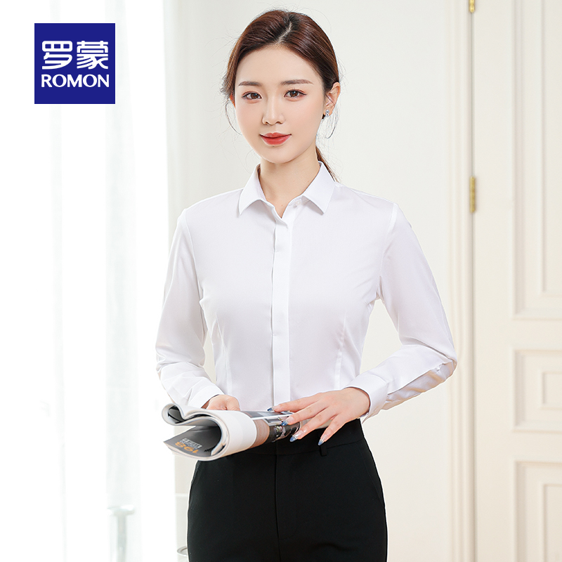 【纯棉免烫】罗蒙女士长袖衬衫2025秋季百搭商务职业工装修身衬衣