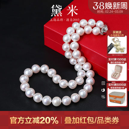 黛米珠宝 华丽 正圆无核珍珠项链送妈妈S925银母亲节礼物-配证书