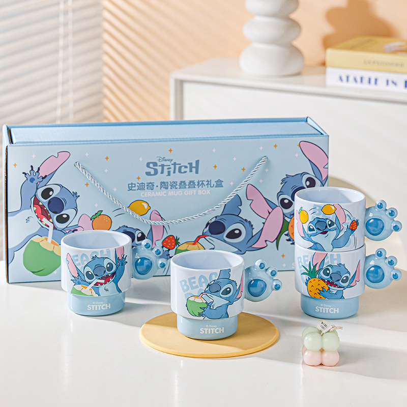 迪士尼正版史迪仔马克杯蓝陶瓷喝水杯办公室儿童可爱套装礼盒送人