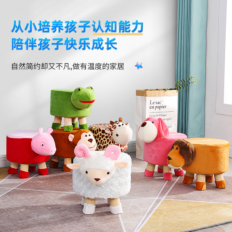 儿童凳子家用网红卡通布艺换鞋凳创意矮凳懒人可爱动物宝宝小板凳