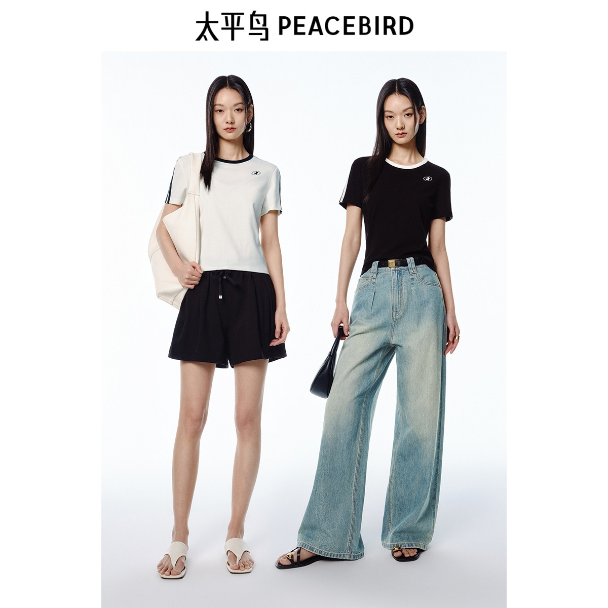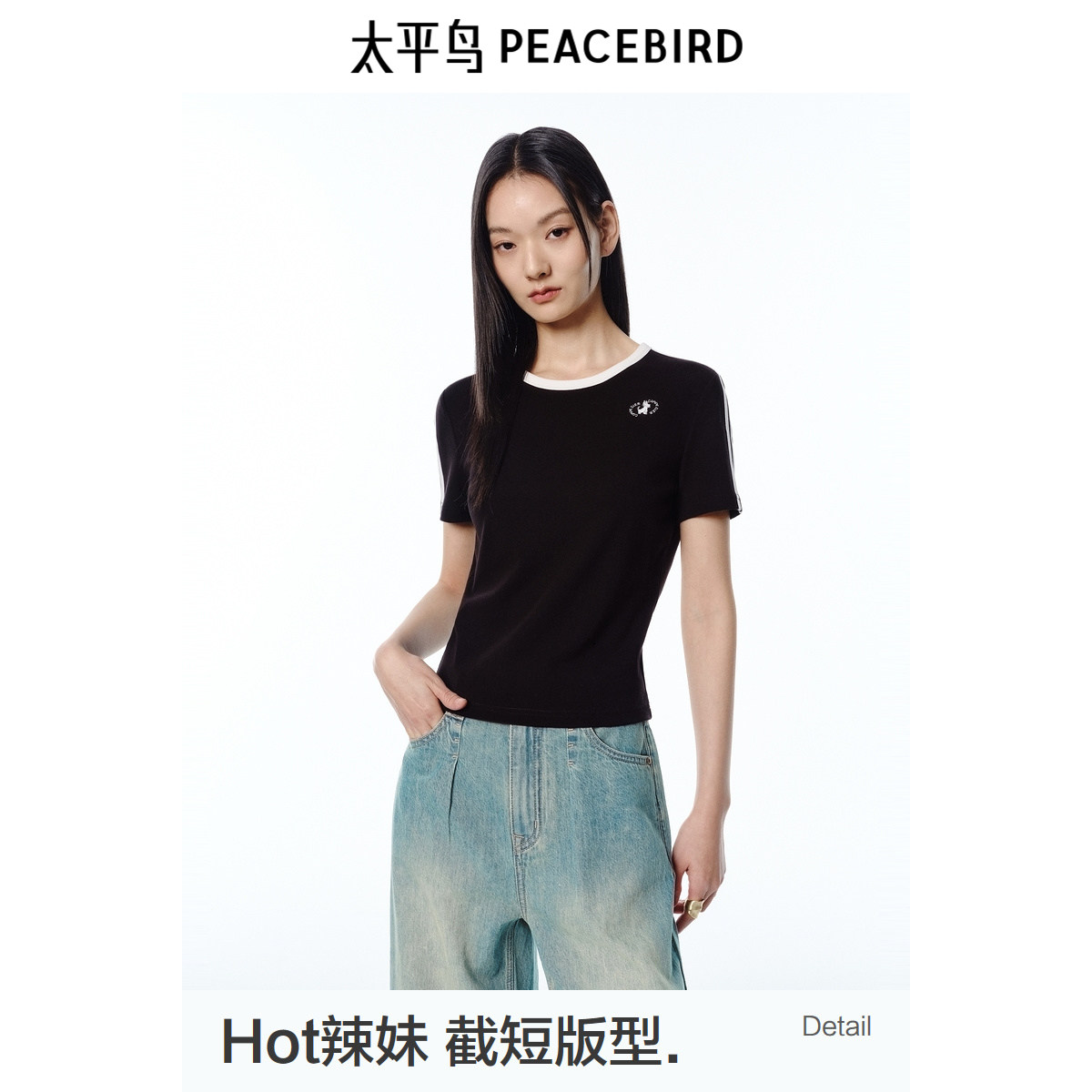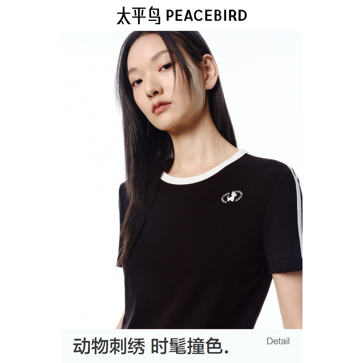【5A抗菌】太平鸟时尚撞边小狗刺绣图案短袖T恤25夏季新款上衣女
