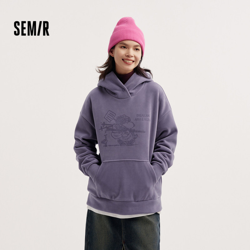 [商场同款]森马史努比系列卫衣女中长款图案2024新款oversize冬装