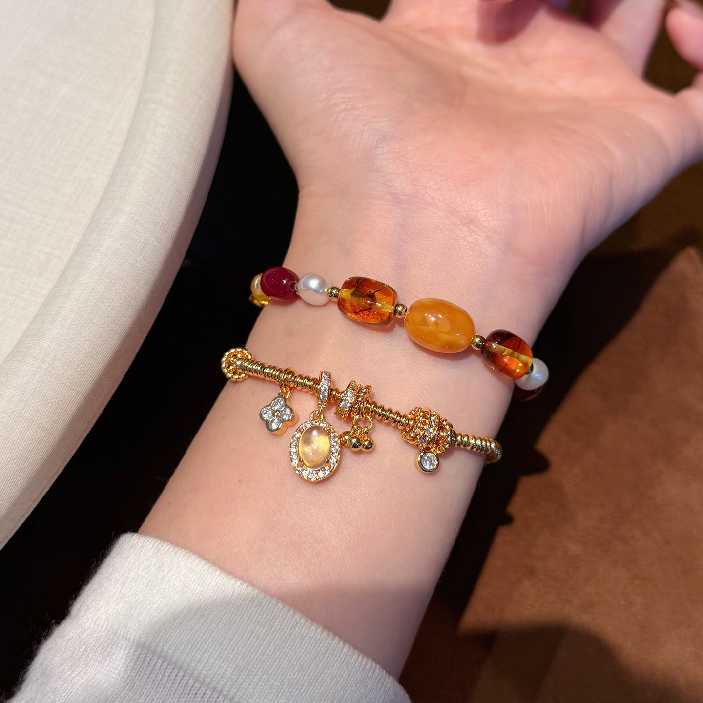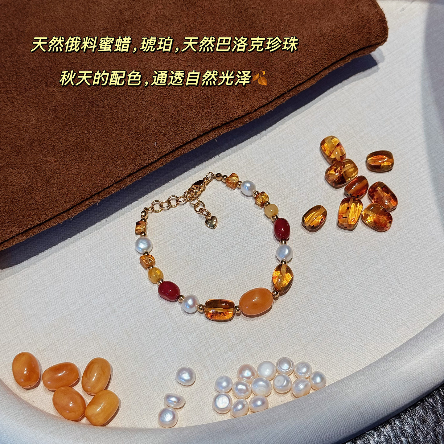 蜜蜂妈蜜蜡琥珀淡水珍珠手链女