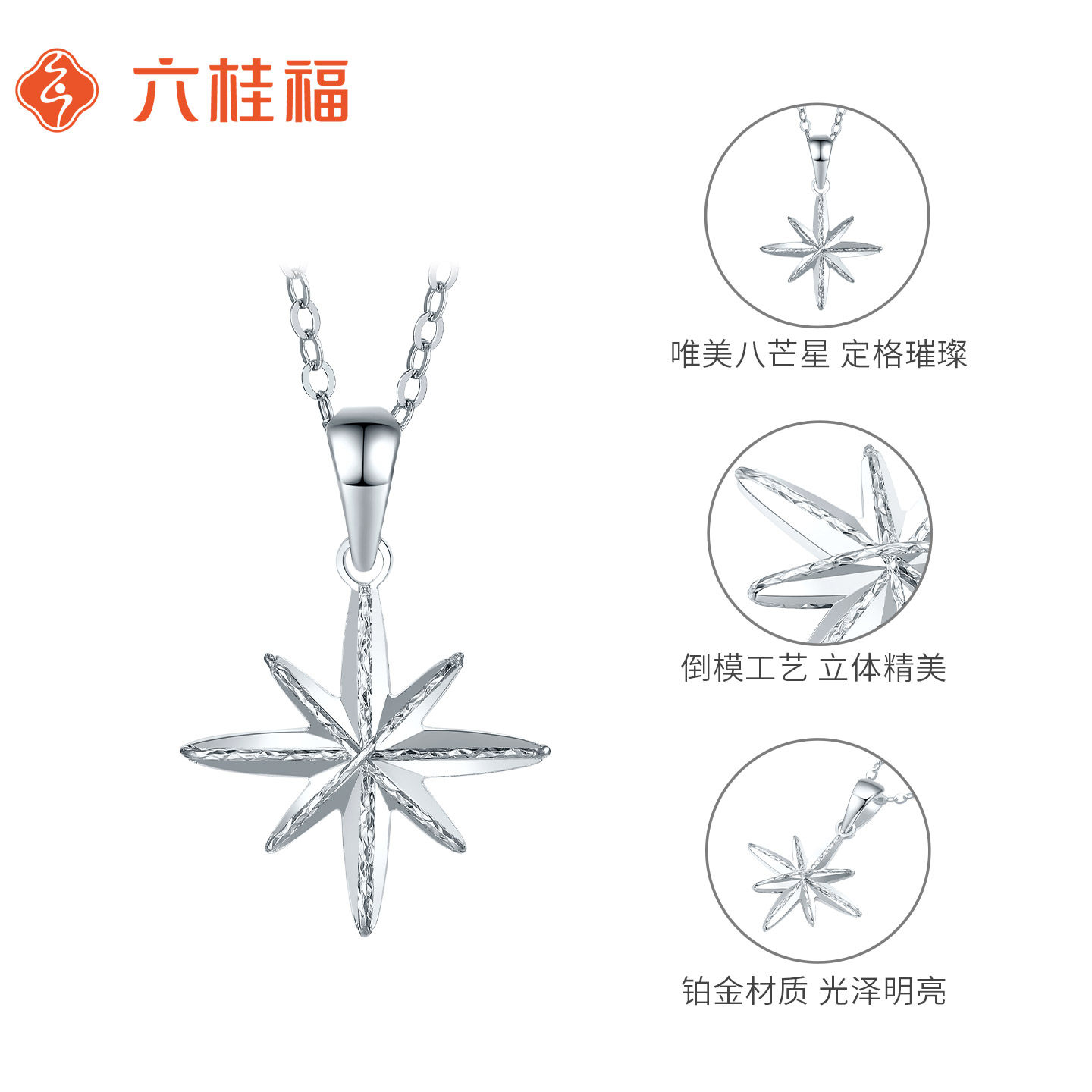 六桂福珠宝铂金吊坠女士款白金八星芒项链挂坠单坠新年礼物