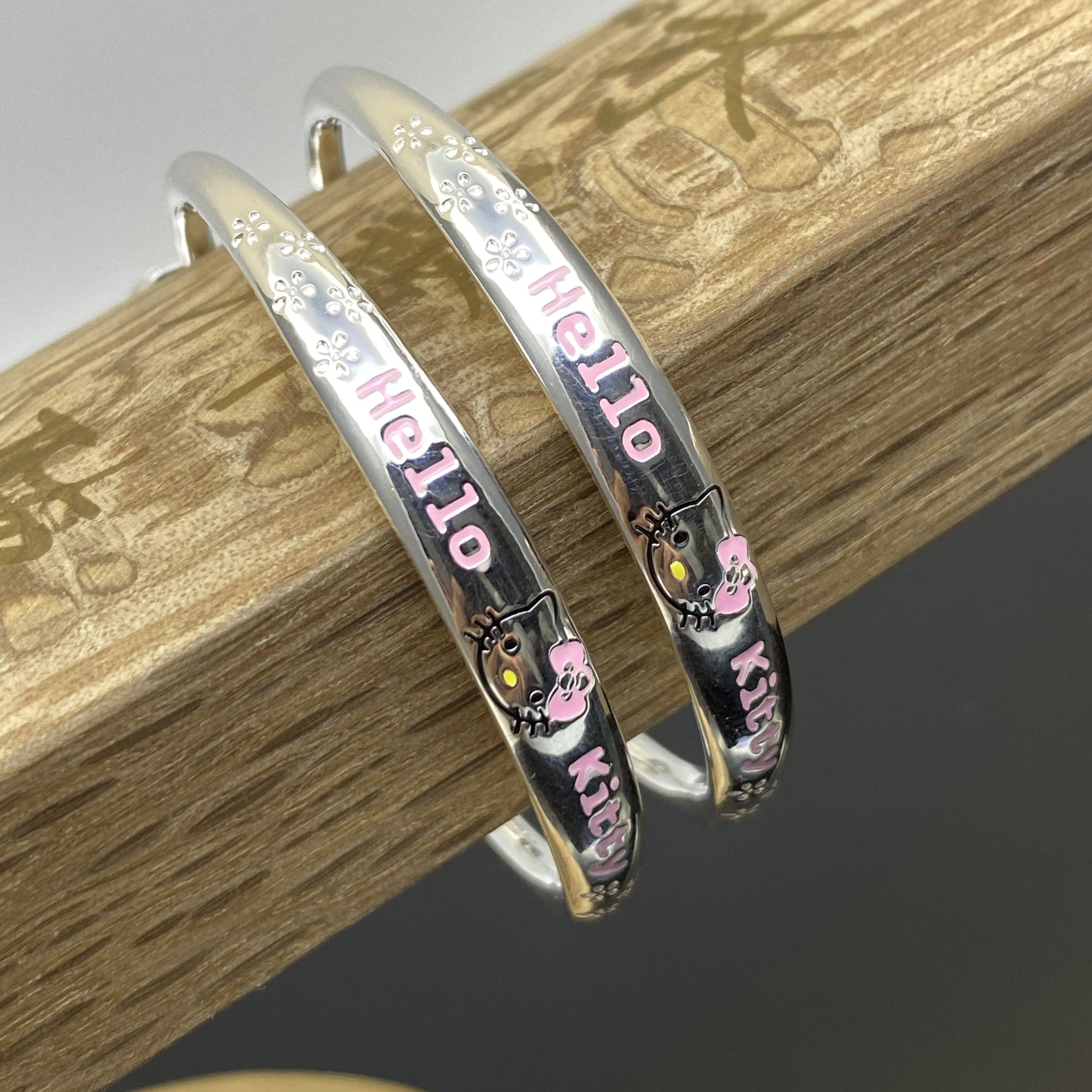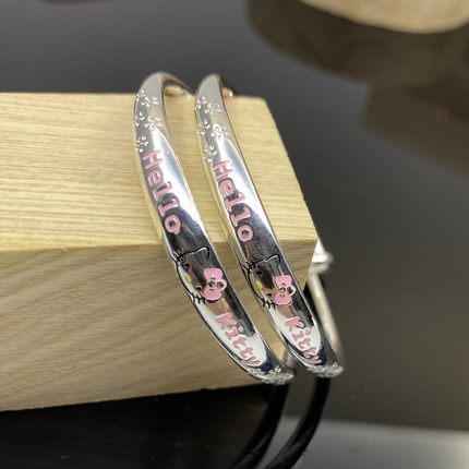 kitty刻字实心雪花儿童纯银手镯