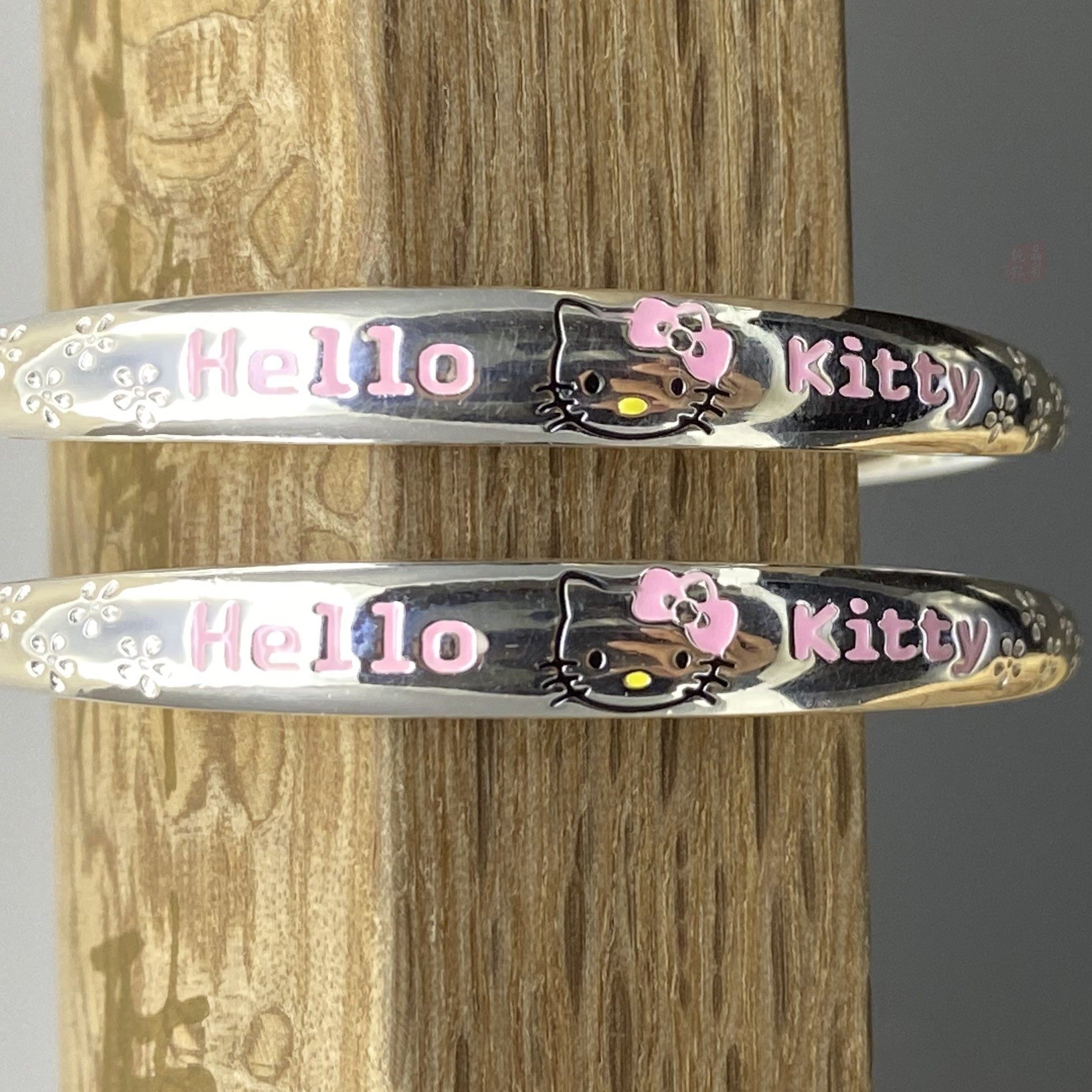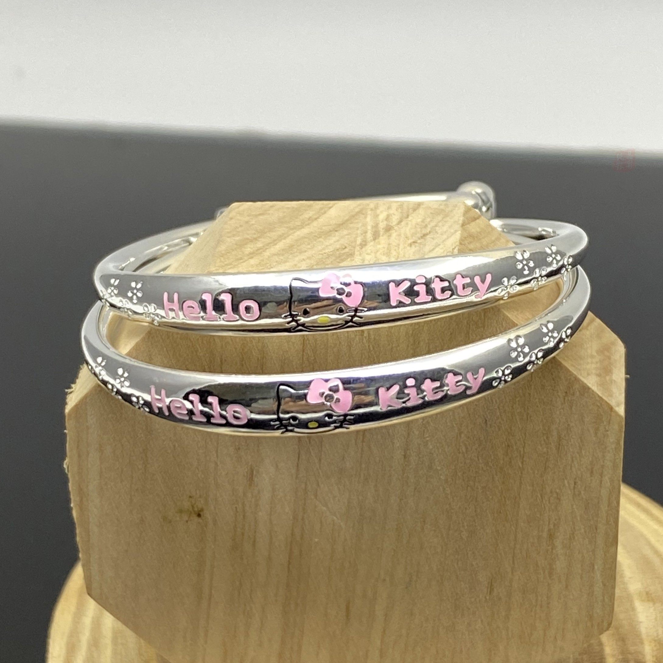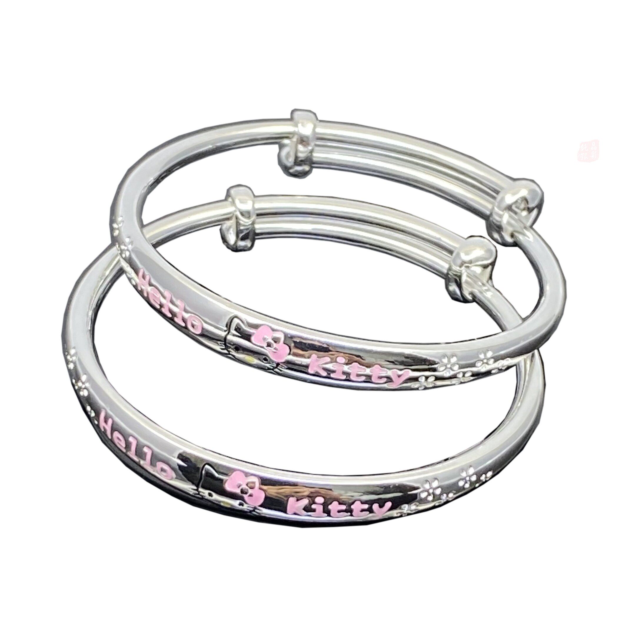 S999宝宝纯银手镯女kitty凯蒂猫刻字实心雪花闺蜜儿童宝宝手饰品