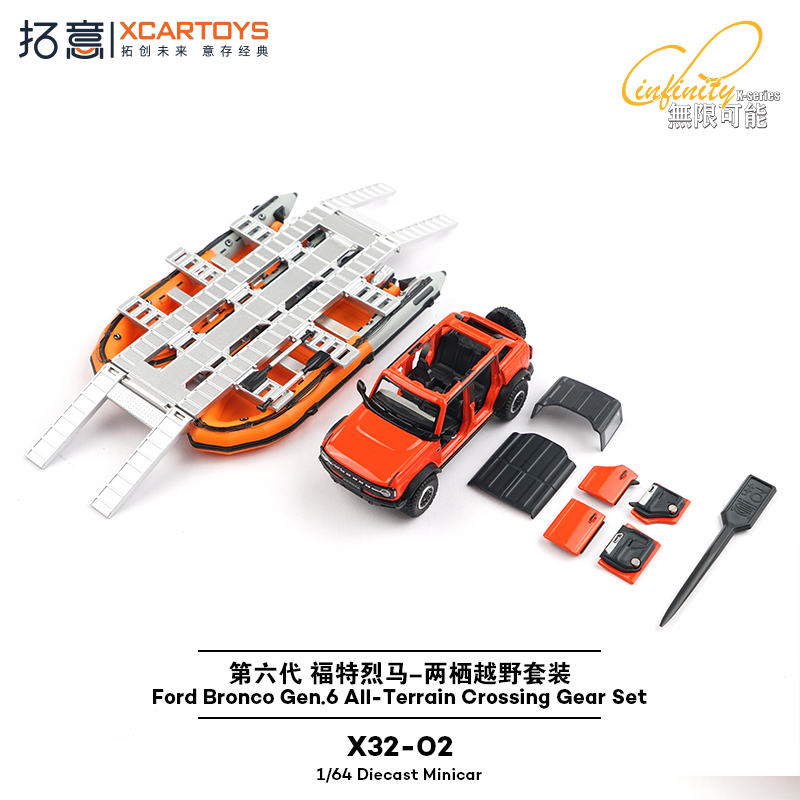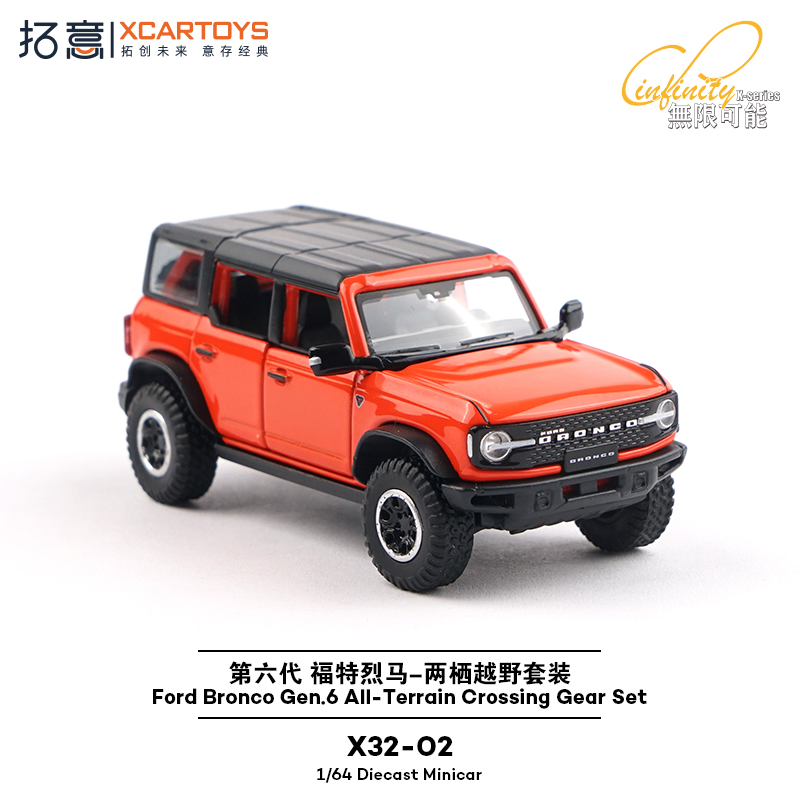 [现货]拓意 1:64 福特烈马Bronco橙色套装X32-02合金越野汽车模型