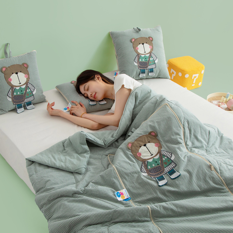 全棉手提卡通抱枕被子两用二合一幼儿园学生午休空调被纯棉夏被靠