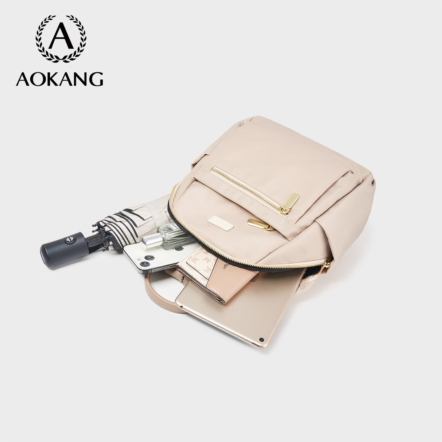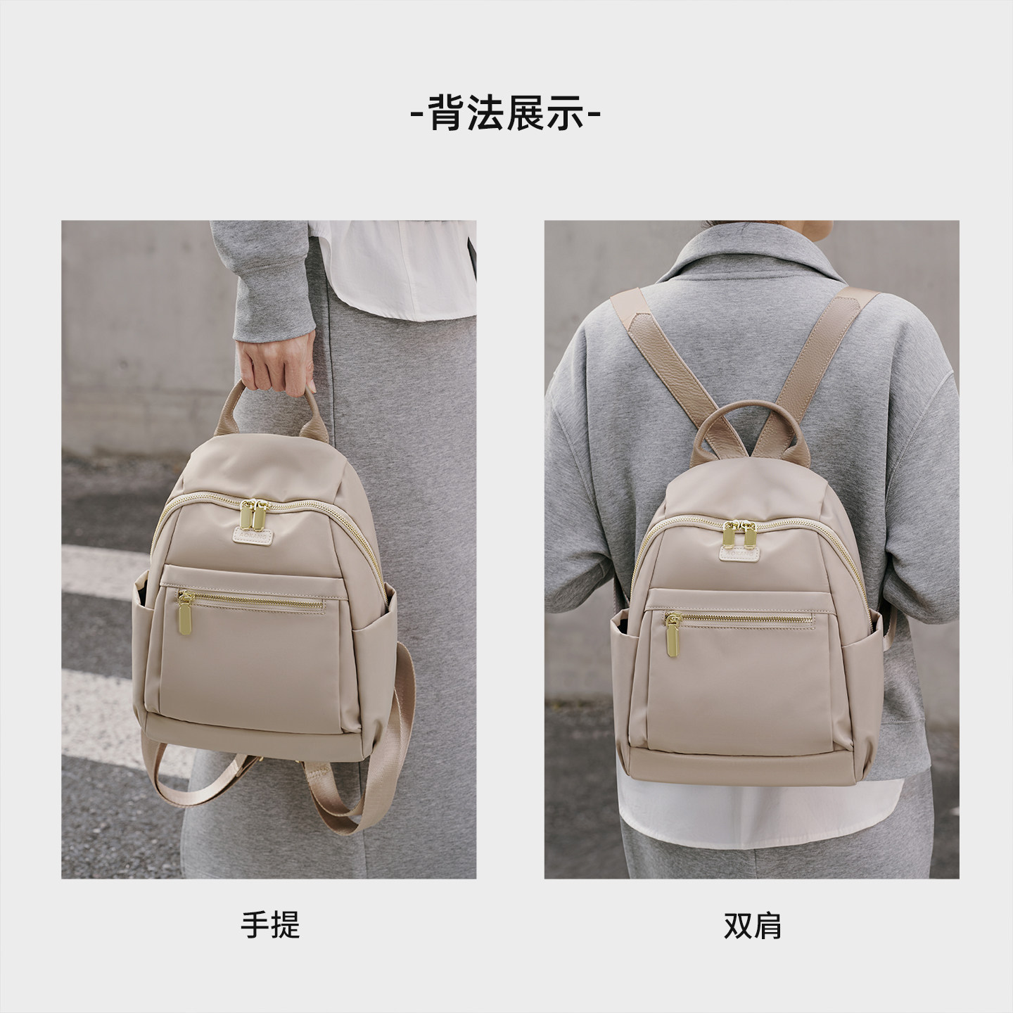 奥康双肩包轻便帆布包大容量背包