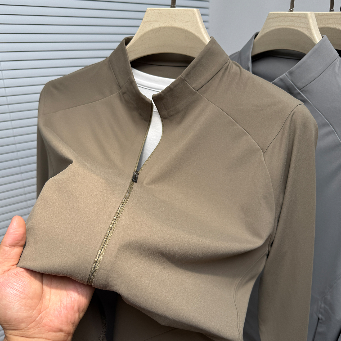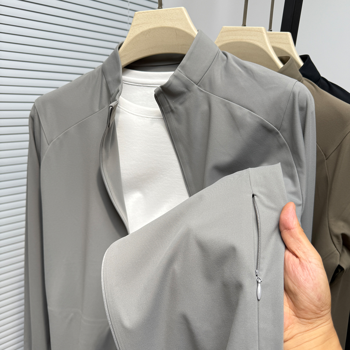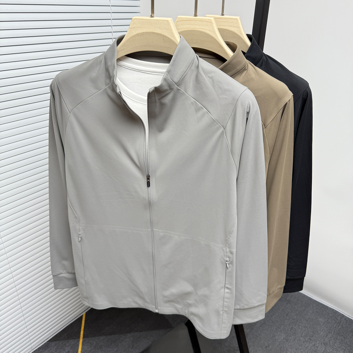 夹克男立领冰丝滑料外套口袋带拉链春秋季男装修身运动户外上衣潮