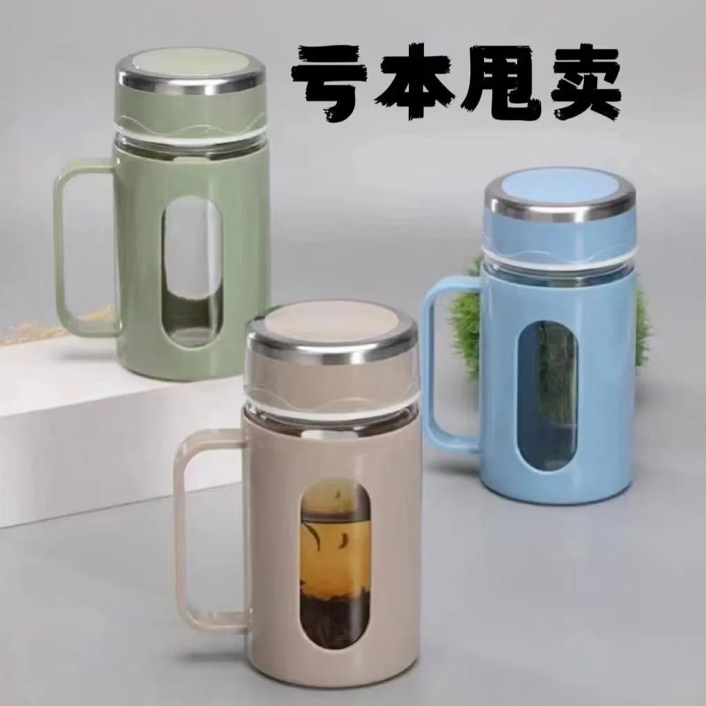 带把手水杯女上班族茶杯茶水分离家用带把办公室泡茶玻璃杯