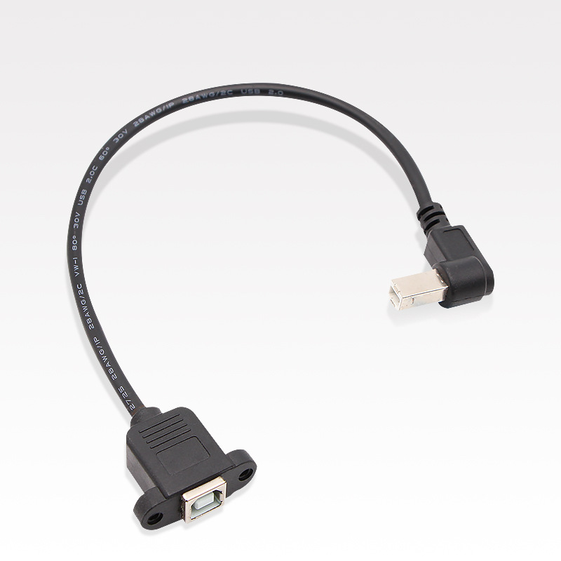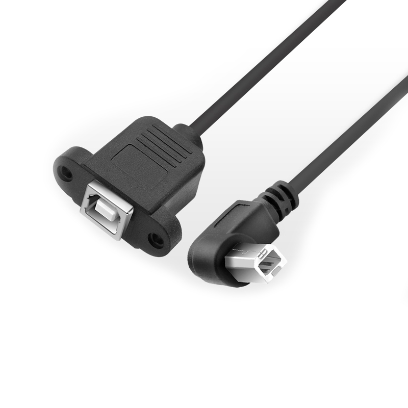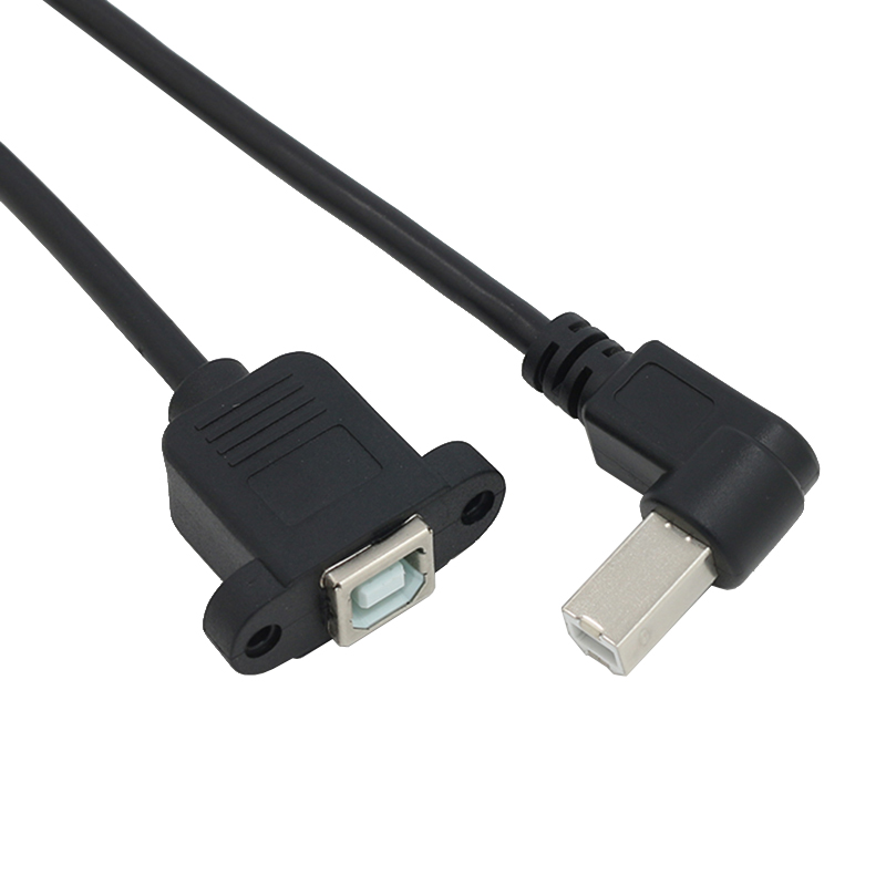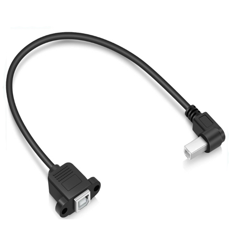 侧弯头USB打印口公母头延长线打印机USB口公对母延长线USB-B公转B母带固定螺丝孔USB打印口公转母延长数据线