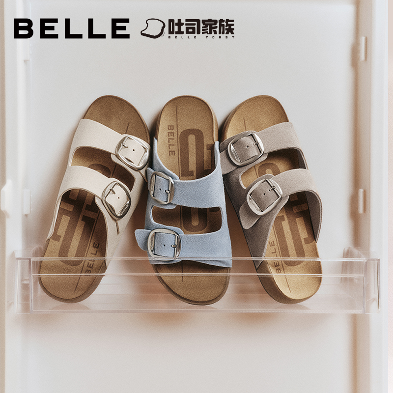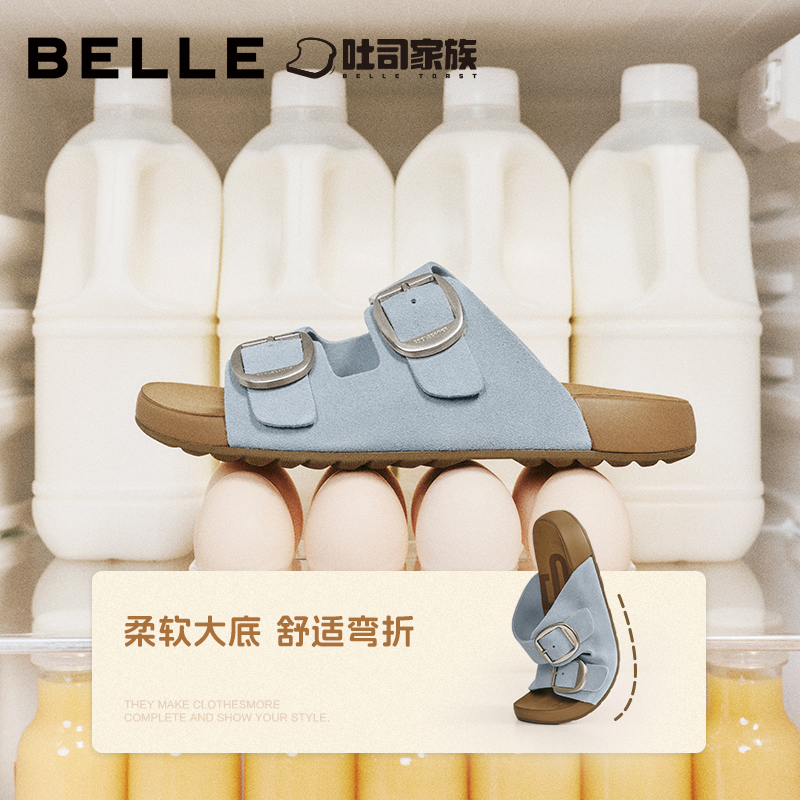 周雨彤同款百丽QQ吐司鞋1代升级版厚底勃肯拖棉鞋外穿毛毛拖鞋预