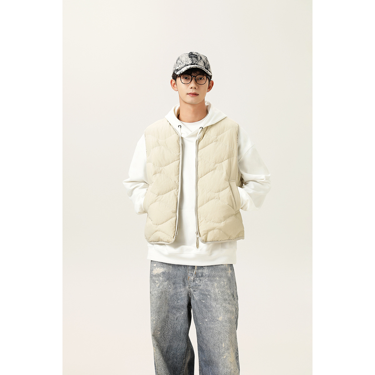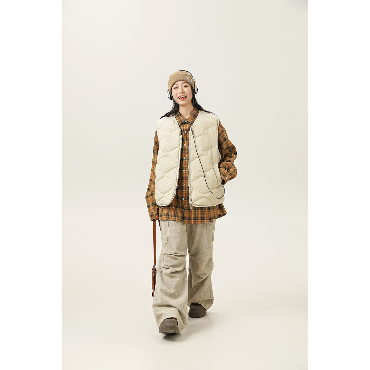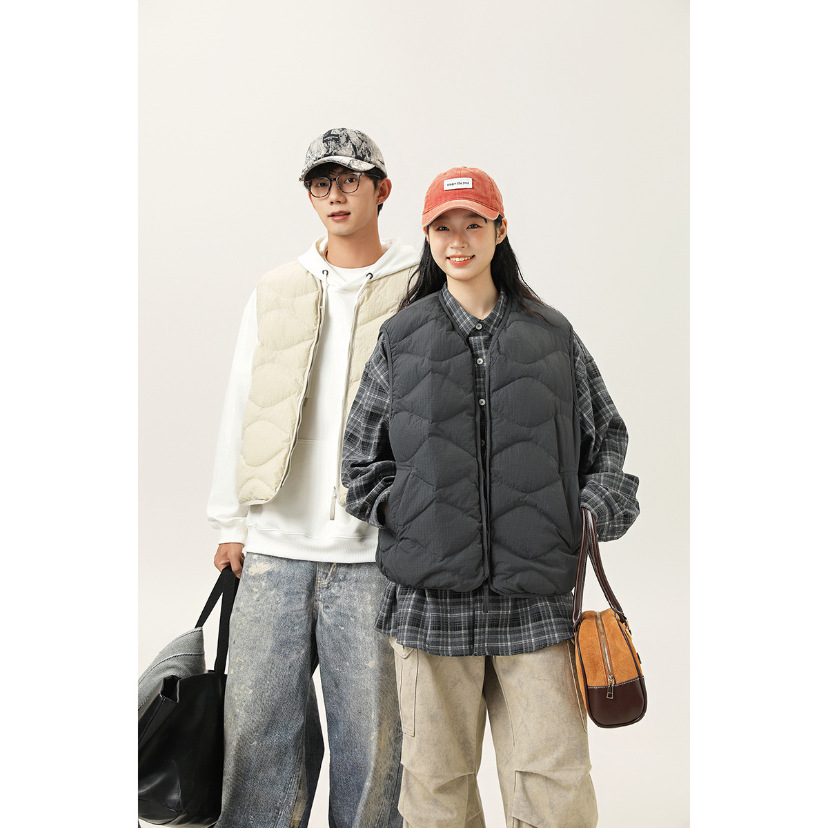 Orderliness冬季白鸭绒外套男女羽绒马甲复古葫芦格羽绒背心YR58