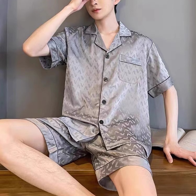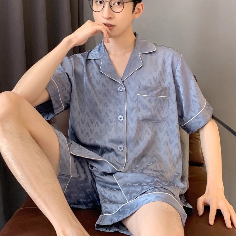 维多利亚高端男士睡衣夏2025新款薄款真丝短袖高级宽松家居服套装
