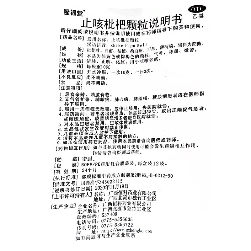 【神乐堂】止咳枇杷颗粒10g*12袋/盒止咳清肺化痰咳嗽咳喘