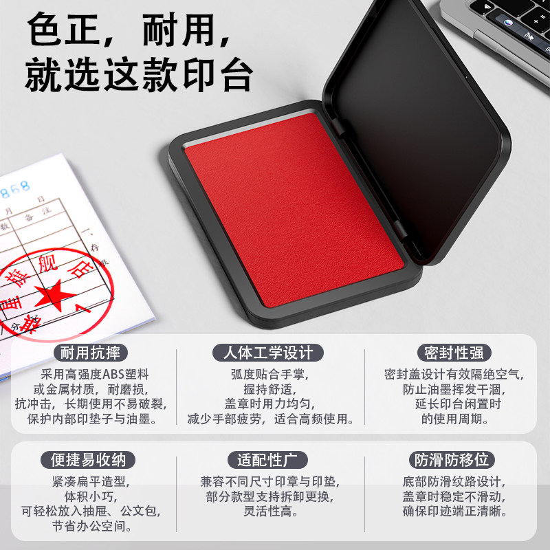 红色印台黑色蓝色印泥办公印台手印指纹盖章印盒印泥快干印章速干财务会计金属印章盒印尼秒干按手印小号便携