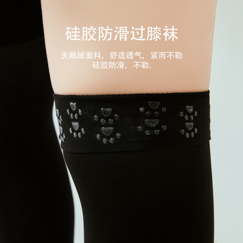 大码长筒袜胖mm粗腿黑色jk女春秋硅胶防滑中筒袜加长大腿过膝丝袜