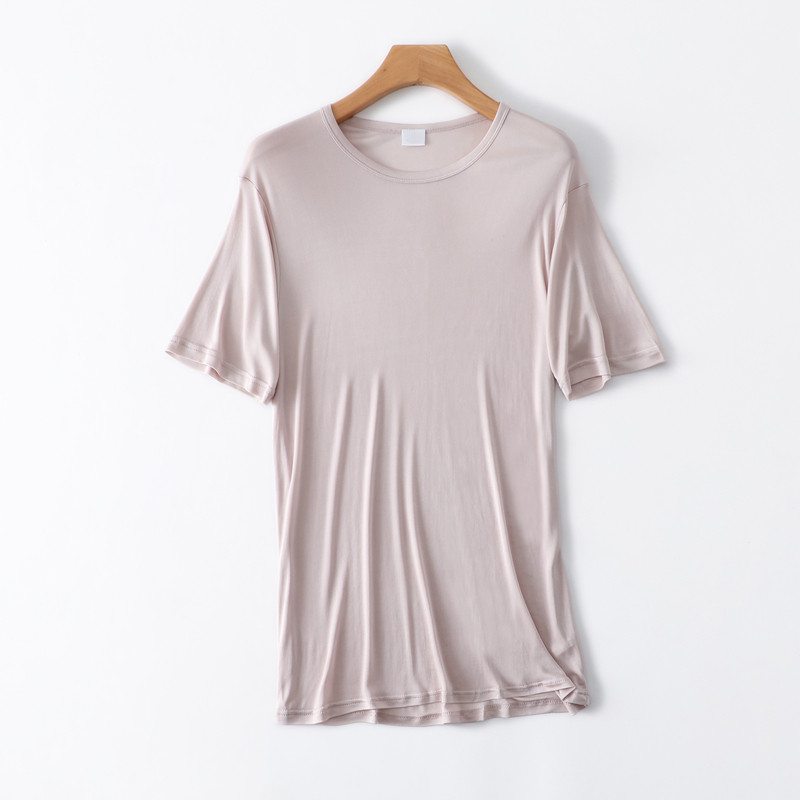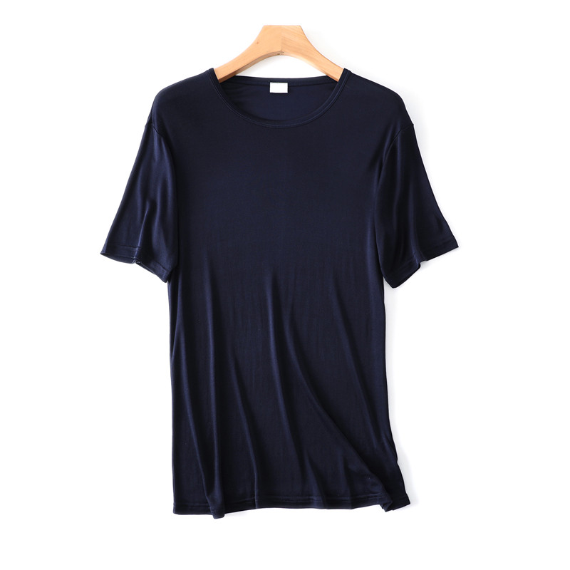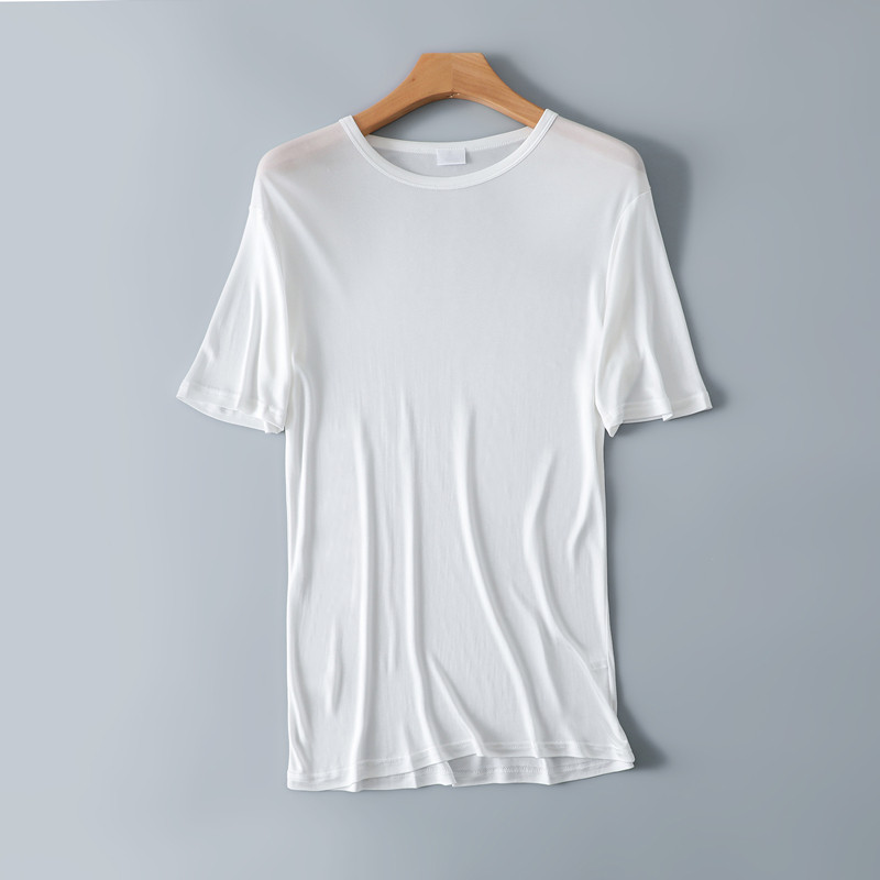 桑蚕丝夏季男士圆领短袖打底衫 真丝双面针织文化衫汗衫T恤