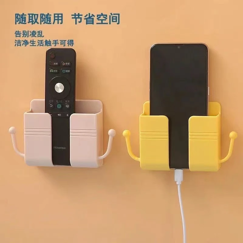 手机支架多功能收纳架挂手机遥控器充电收纳盒加大背胶挂钩免打孔