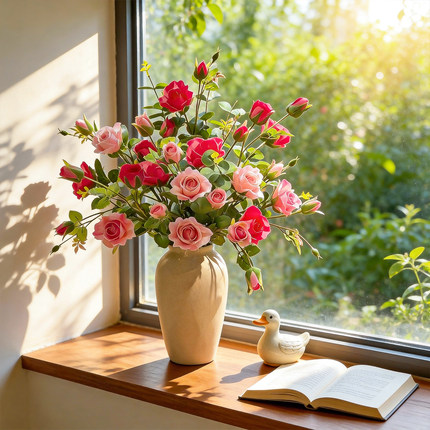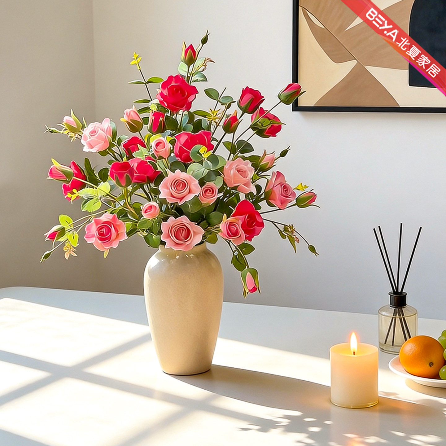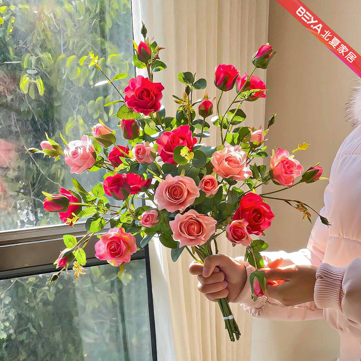 红色玫瑰成品花束假花仿真花摆设客厅餐桌桌面氛围感装饰家居摆件