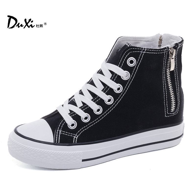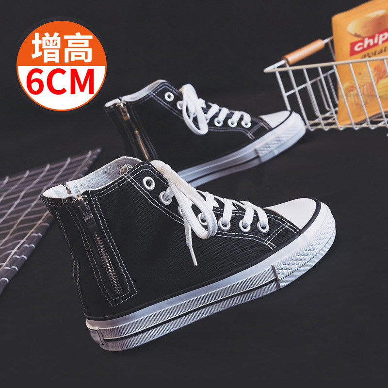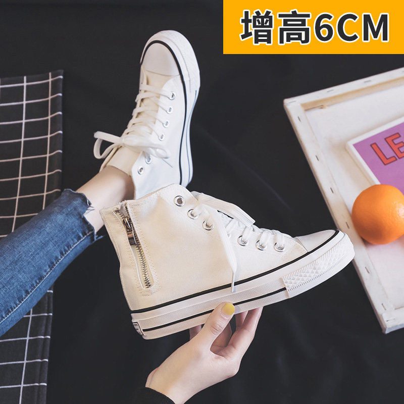 小白鞋内增高百搭风侧拉链帆布鞋