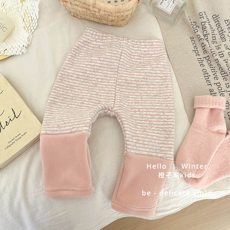 女童拼色加绒打底裤秋冬季洋气宝宝加厚大pp裤小女孩百搭外穿裤子