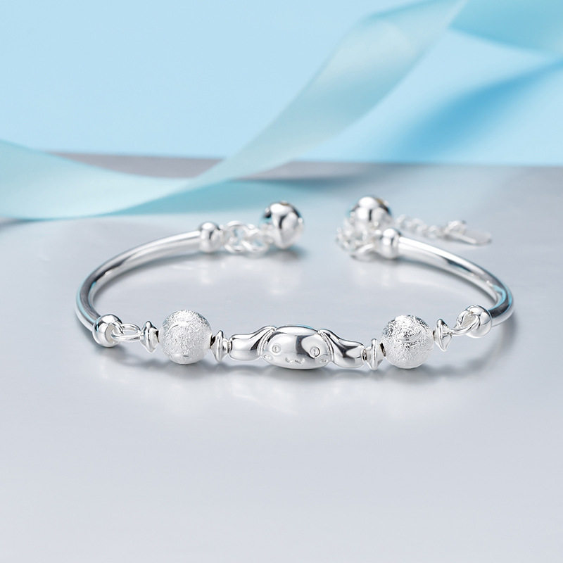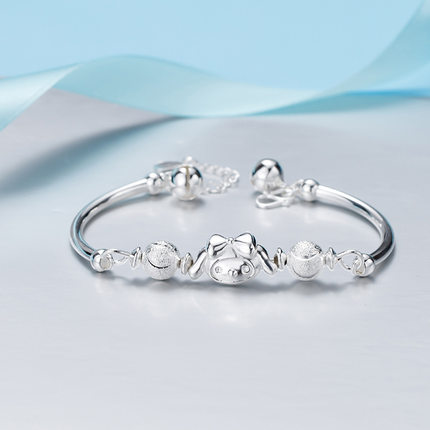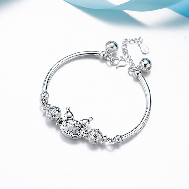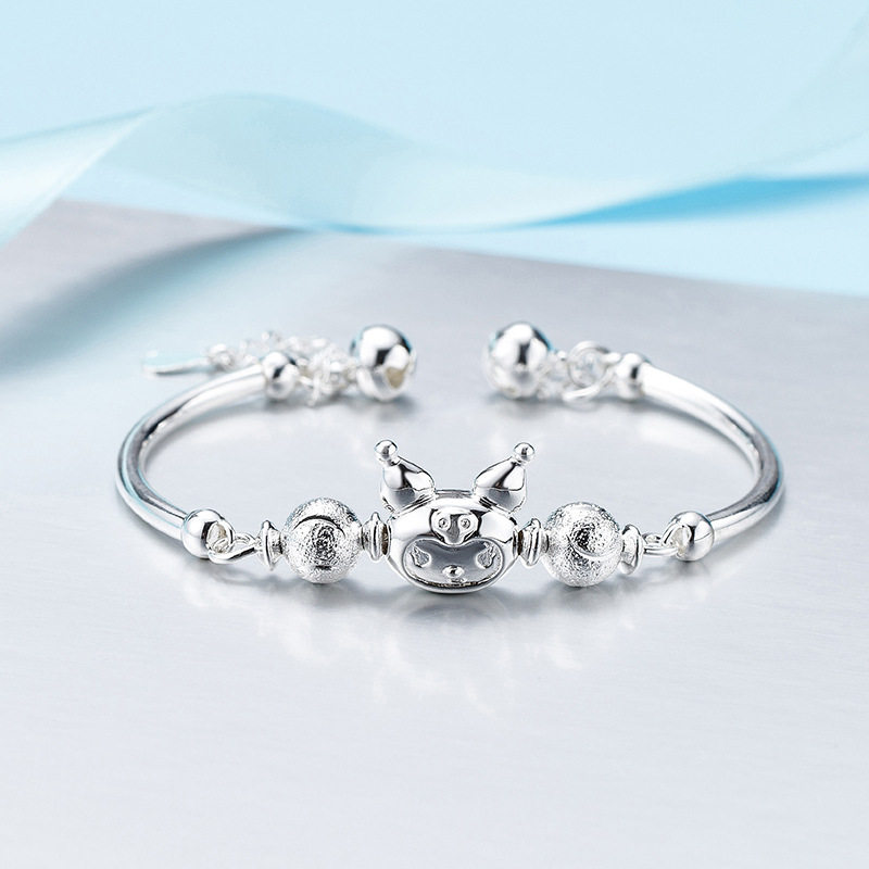 925纯银手链女公主kitty美乐蒂儿童小孩宝宝卡通实心日韩版银镯子