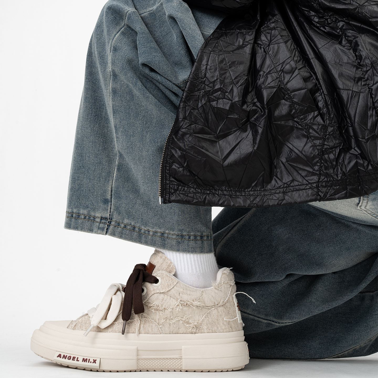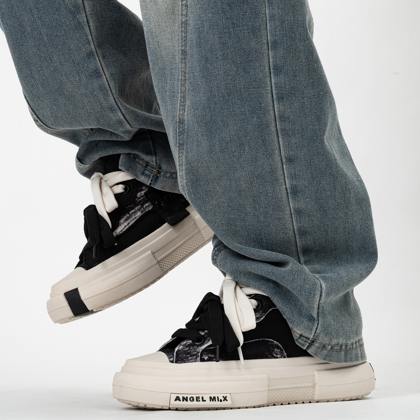 7CM隐形内增高帆布鞋男女情侣款潮牌小众设计双鞋带厚底休闲板鞋