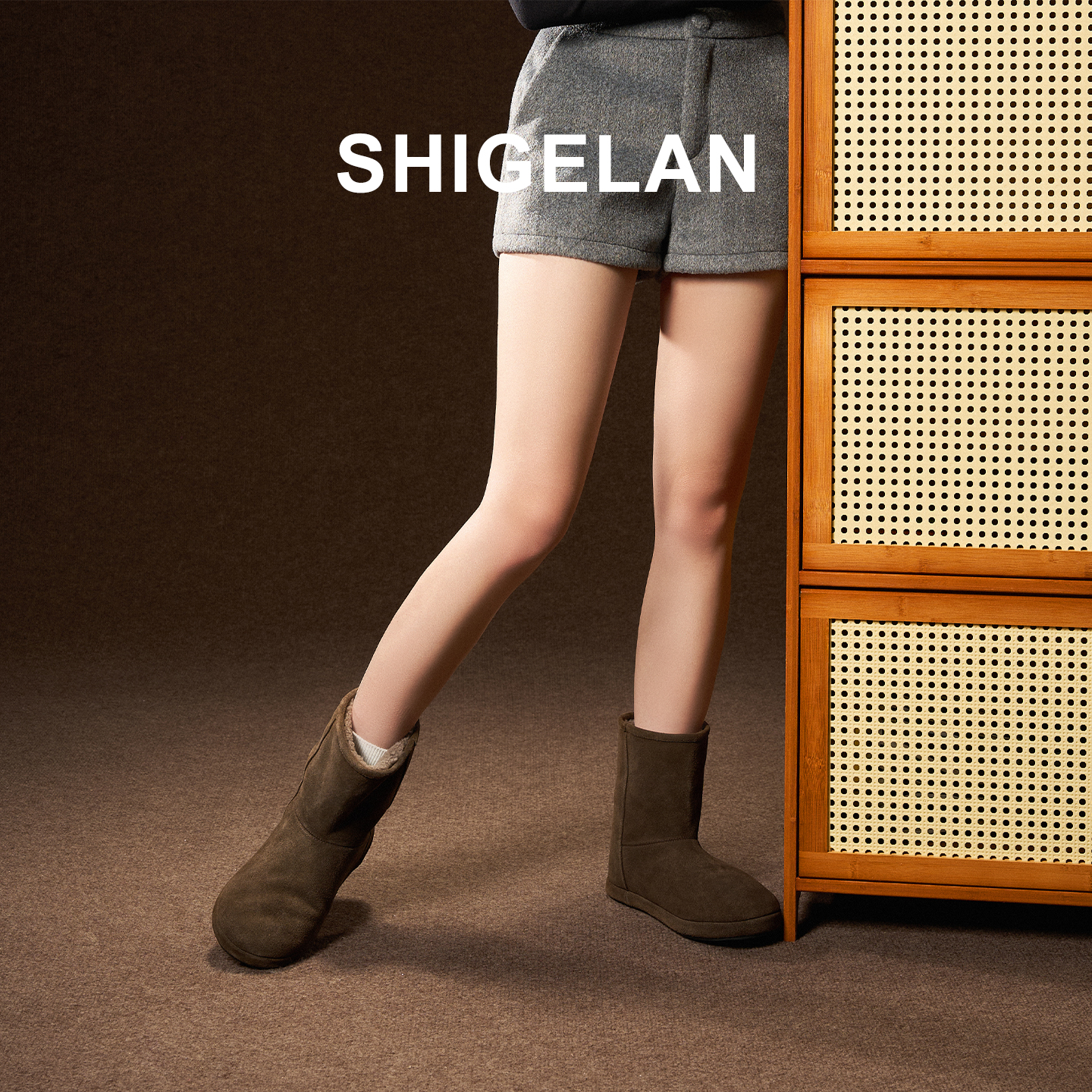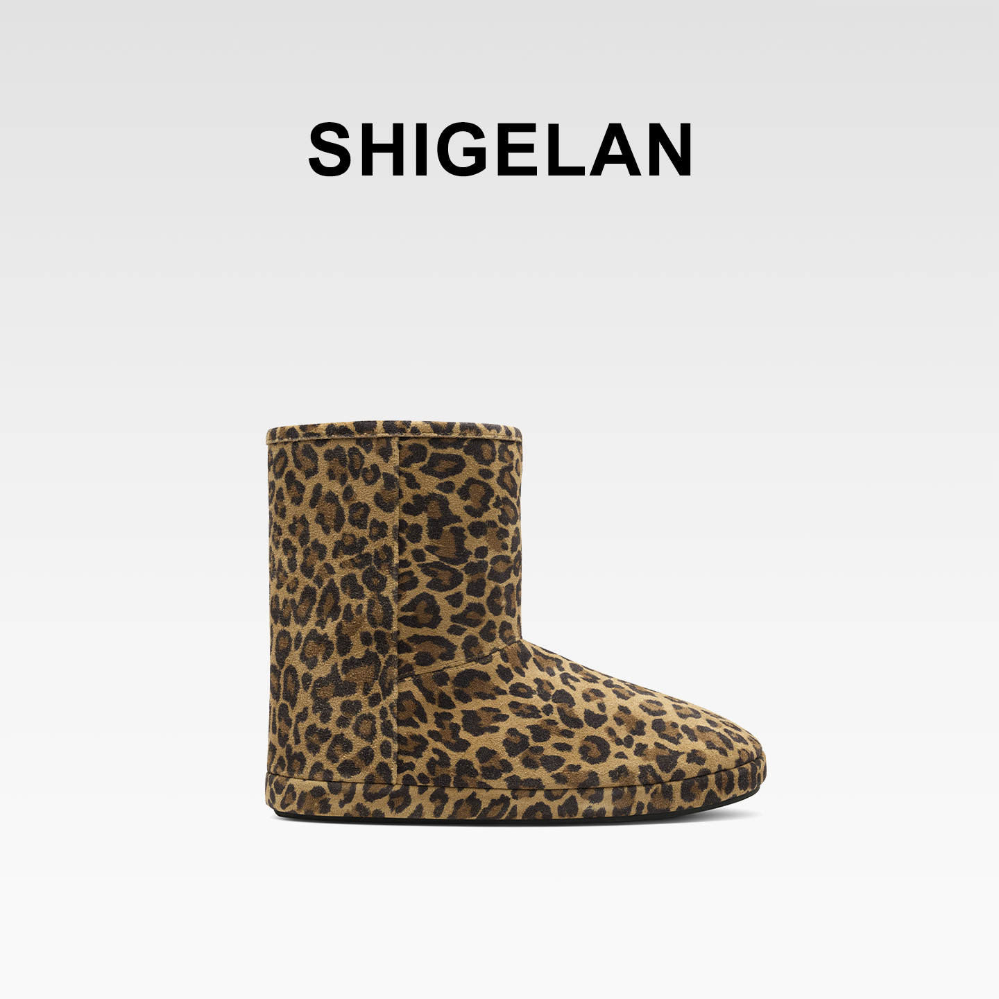 诗歌兰2025冬季新款真皮豹纹雪地靴女英伦风短筒靴百搭舒适时装靴