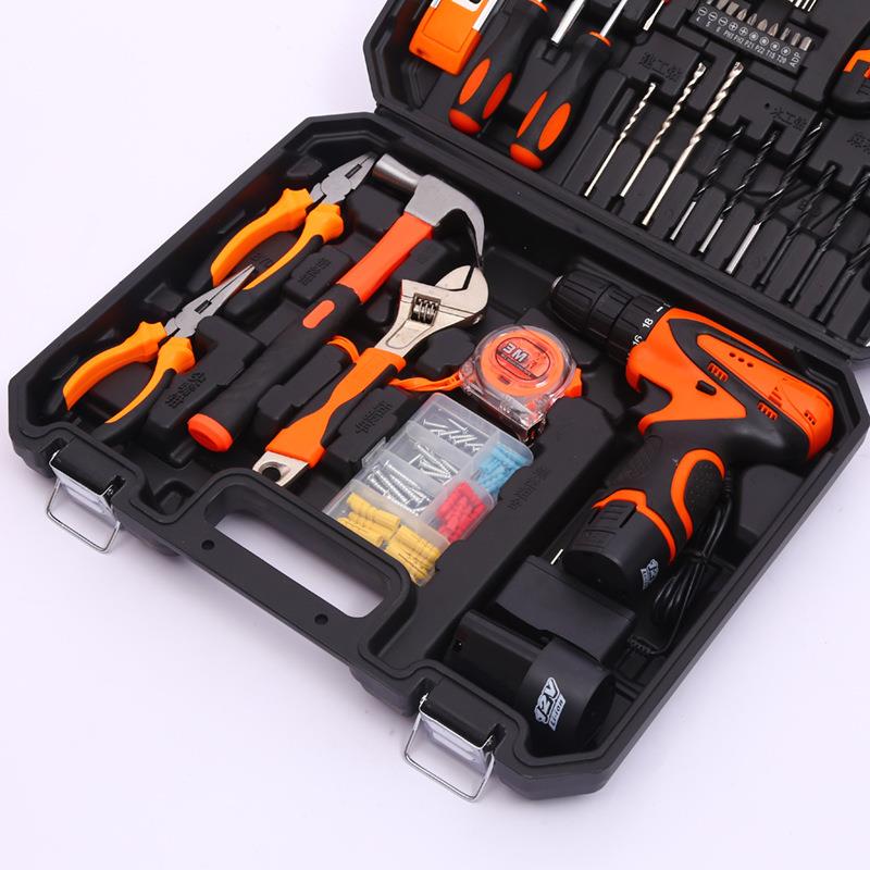 五金工具锂电钻套装 电工维修工具箱 组合多功能组套家用修理工具