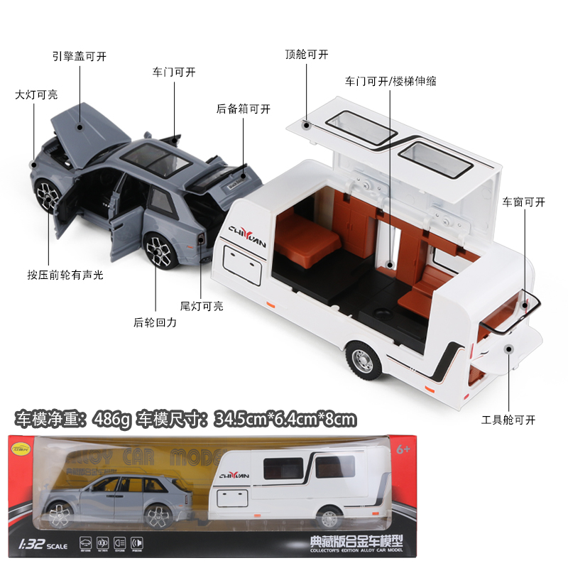 劳斯莱斯库里南拖挂房车模型仿真合金儿童小汽车玩具车模摆件礼物