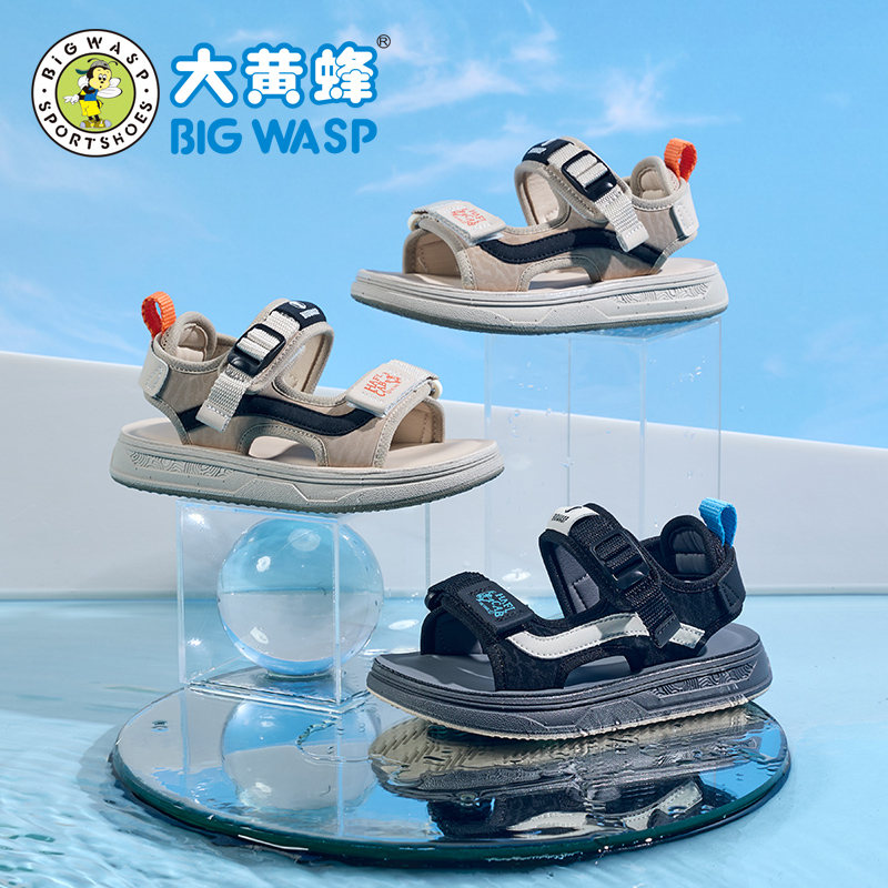 大黄蜂童鞋儿童凉鞋男2025夏季新款魔术贴露趾沙滩鞋防滑男童鞋子