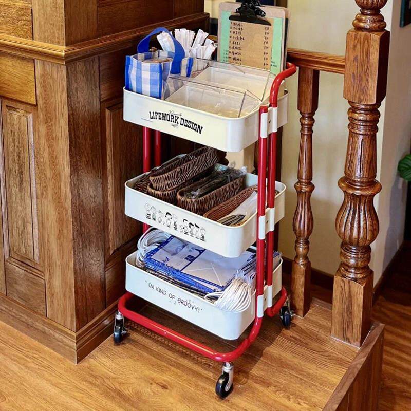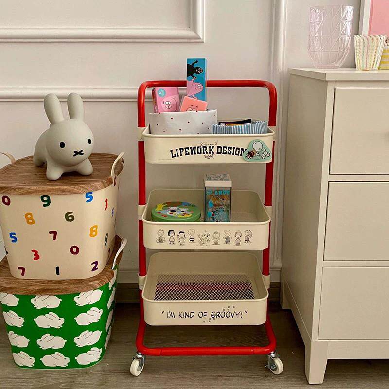 多巴胺史努比手推车储物架移动地板到天花板客厅零食多层储物架浴