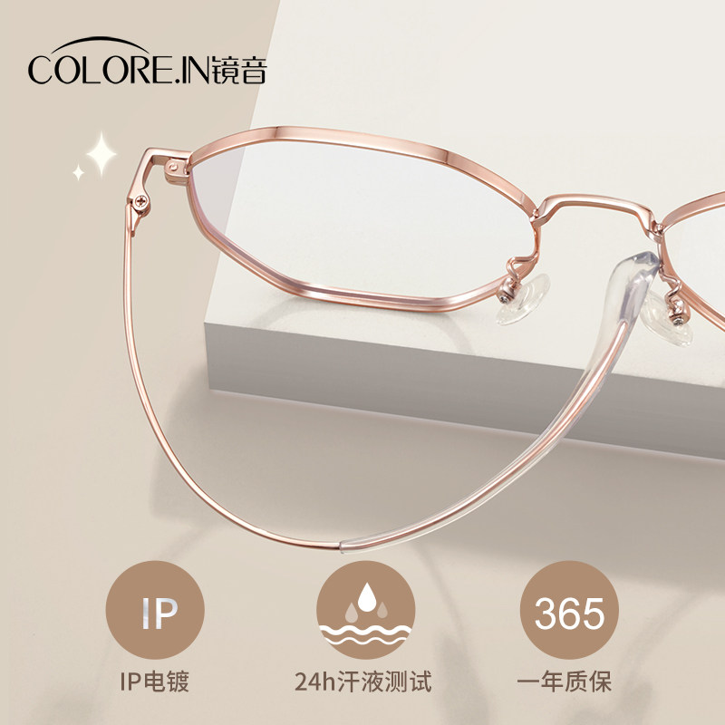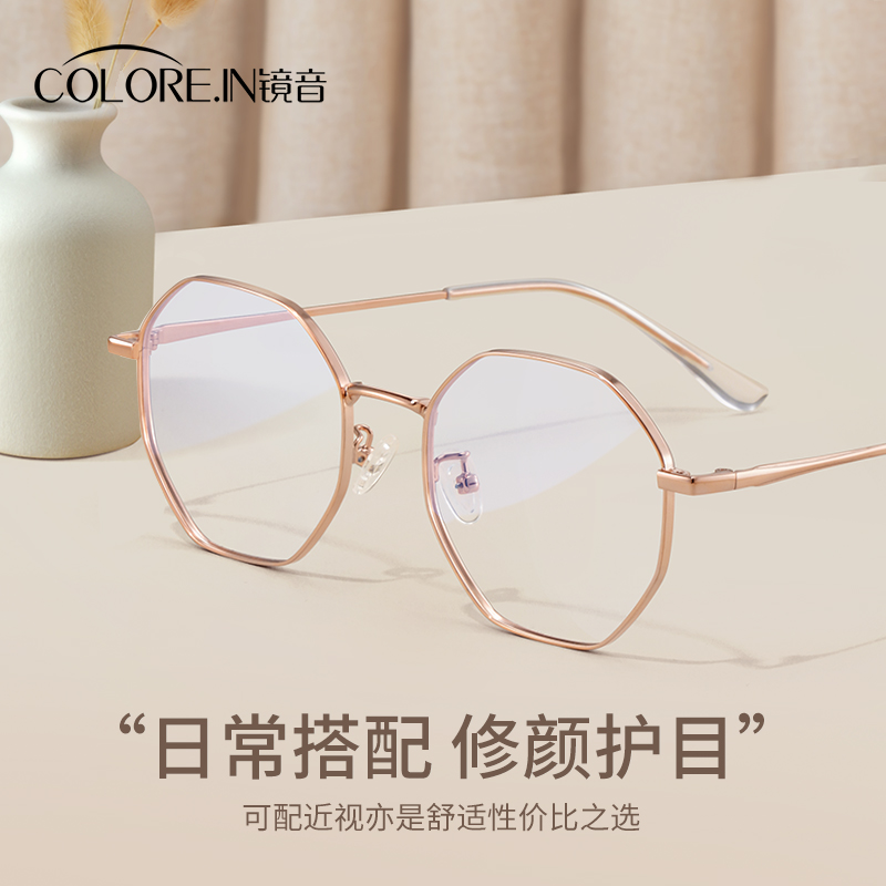防蓝光辐射近视眼镜框女款可配度数眼睛高级感金丝多边护眼平光镜