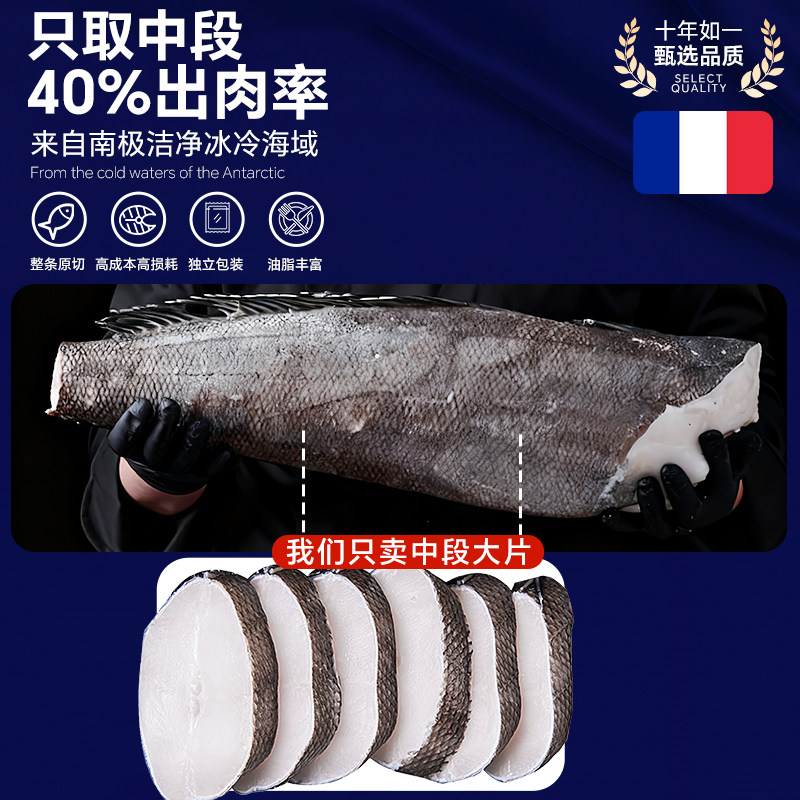 法国进口银鳕鱼新鲜冷冻深海雪鱼南极犬牙鱼整条中段切片