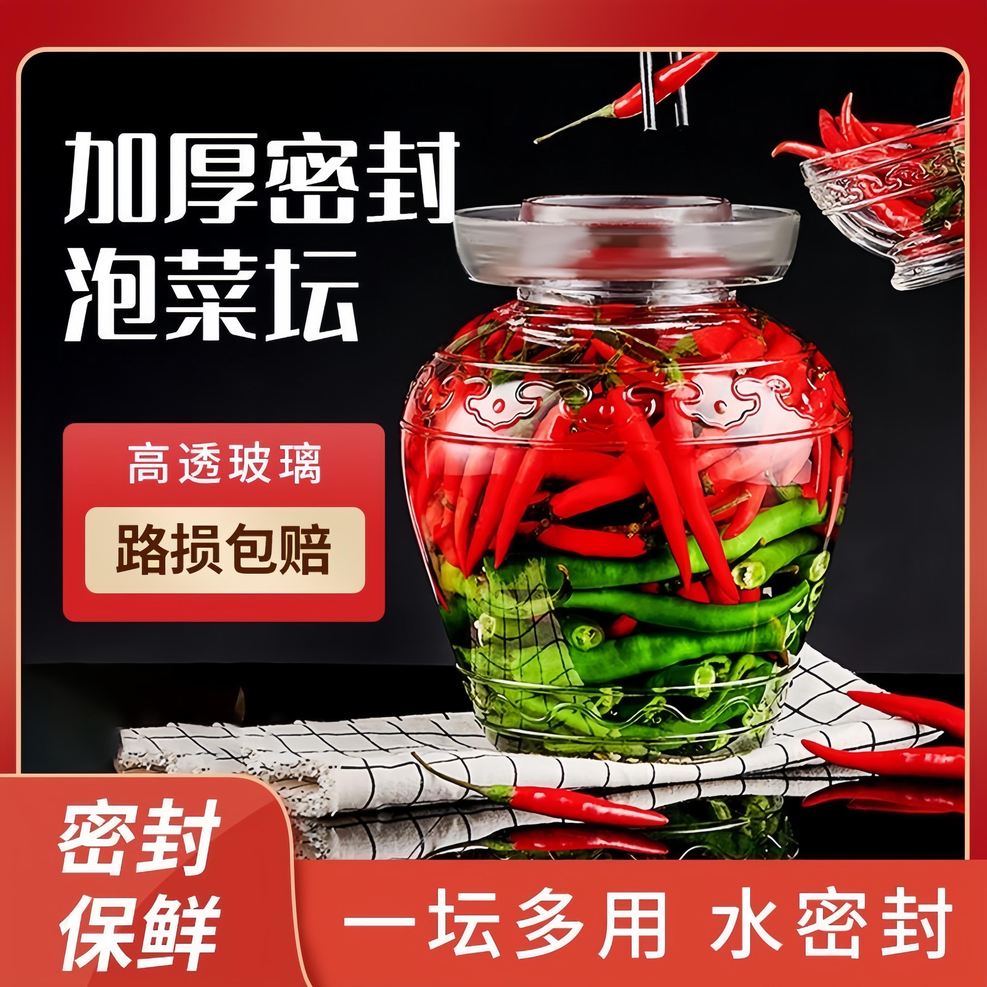 加厚玻璃泡菜坛子密封罐子大小号咸菜腌菜罐菜缸四川家用酸菜坛子