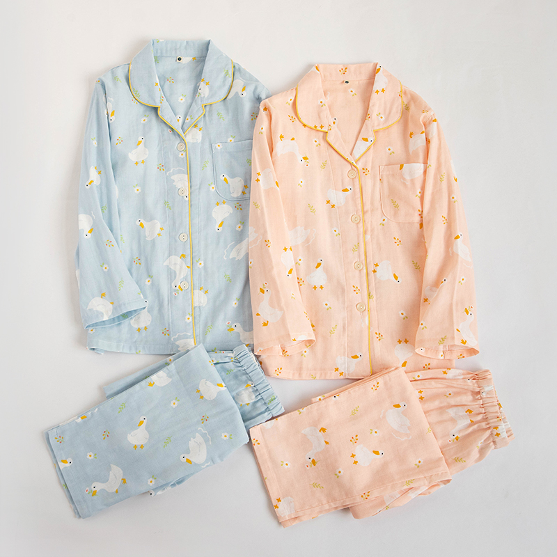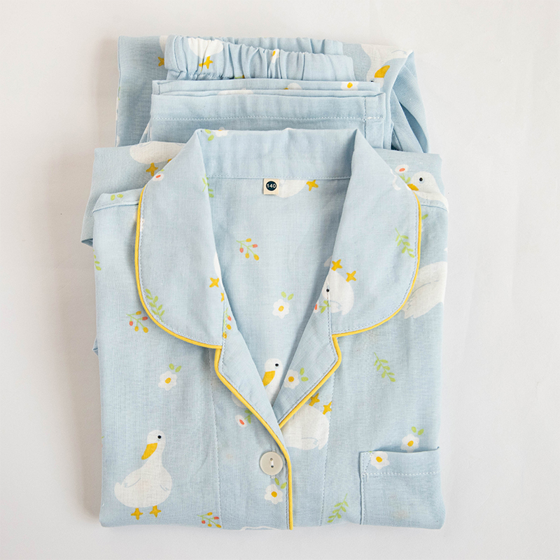 卡通鸭双层纱布全棉舒适春夏睡衣