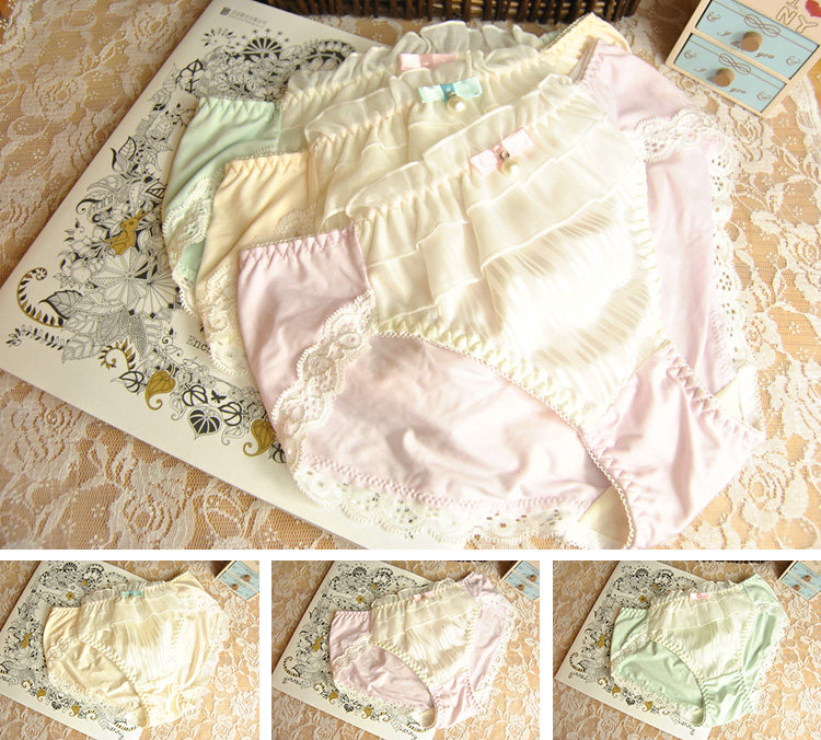 牛奶丝3条装 日系唯美蕾丝女士内裤丝滑小清新中低腰三角内裤大码