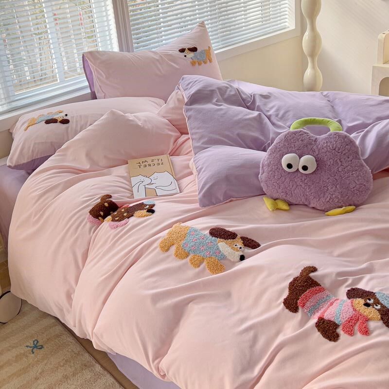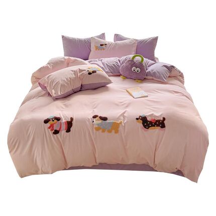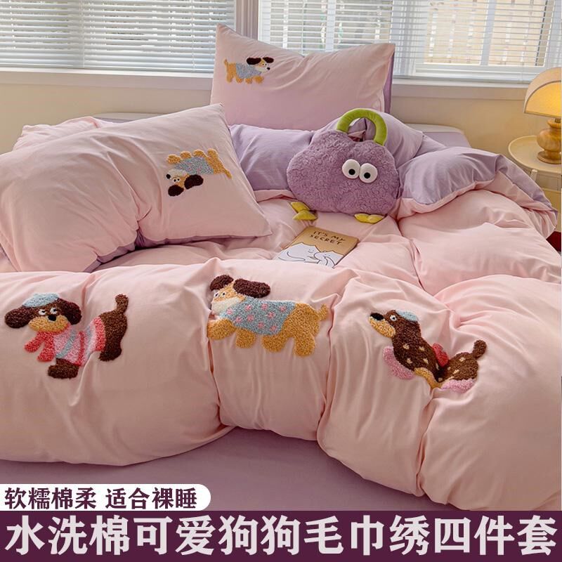 卡通水洗棉毛巾绣四件q套双人被套单件床单学生宿舍三件套床上用